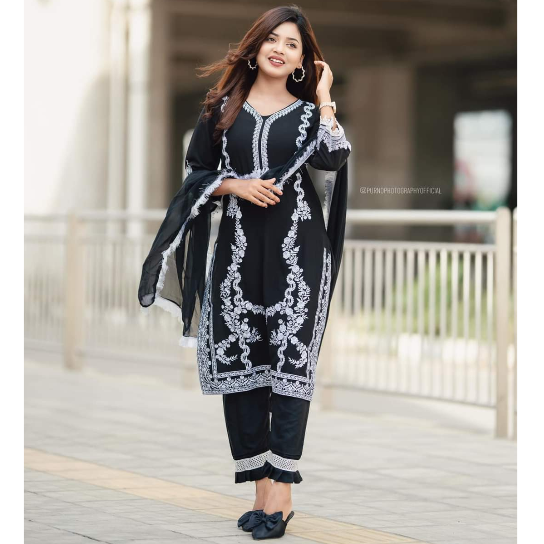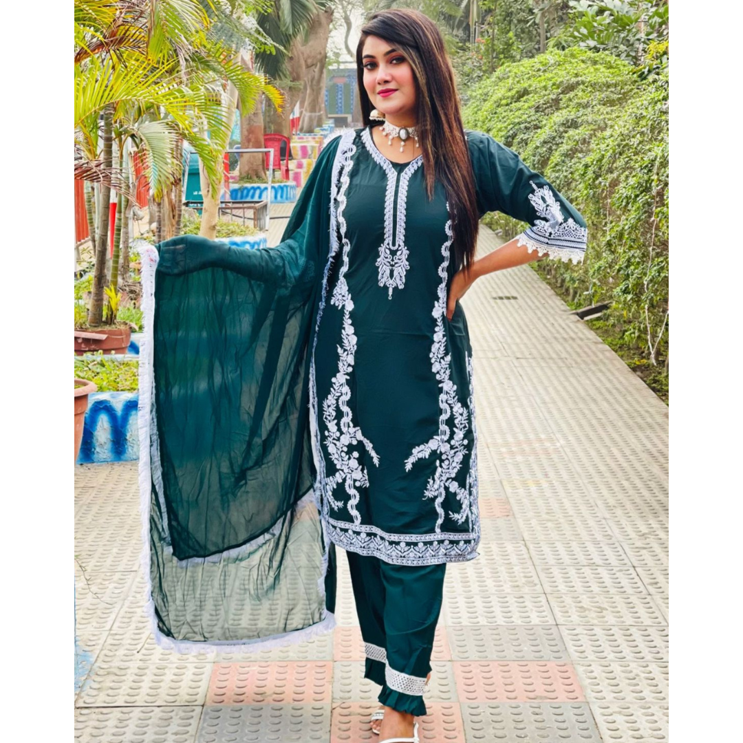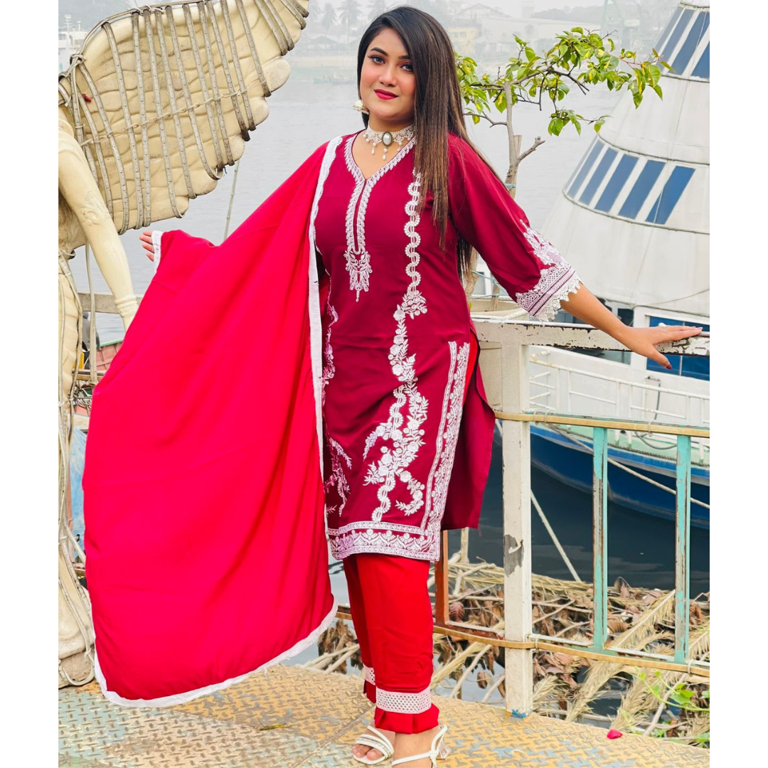 এমব্রয়ডারি কাজের সঙ্গে স্যুট থ্রি পিস