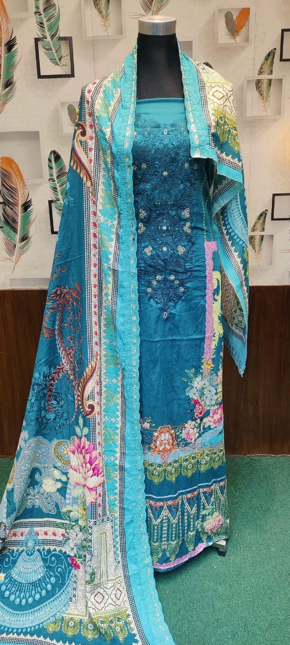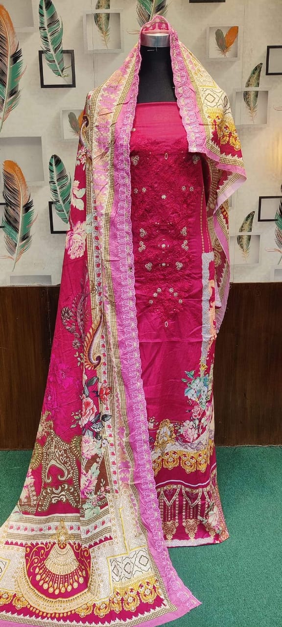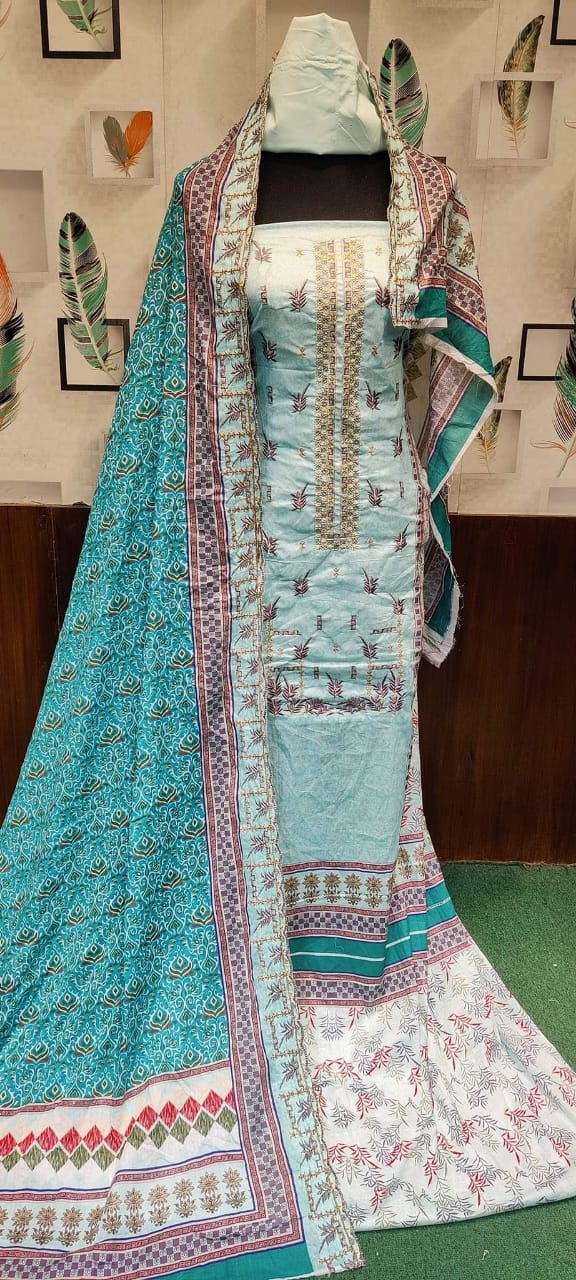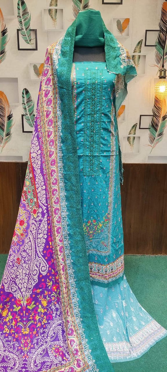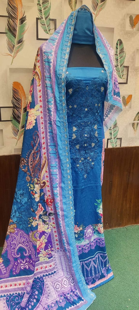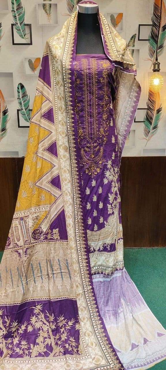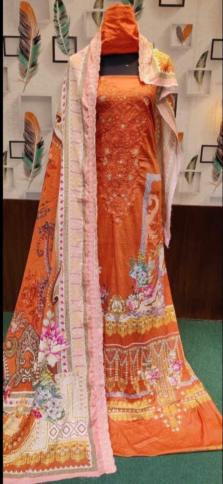 👗জামা কটন। ডিজিটাল প্রিন্টের উপর এমব্রয়ডারি করা
