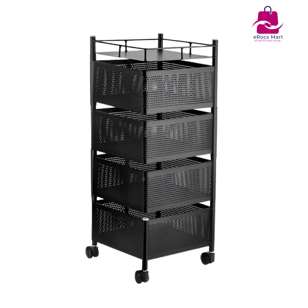 Buy 4-Layer Square Kitchen Rack in Bangladesh. Durable stainless steel shelf with wheels, perfect for storing vegetables, fruits, onions, garlic, and kitchen essentials.