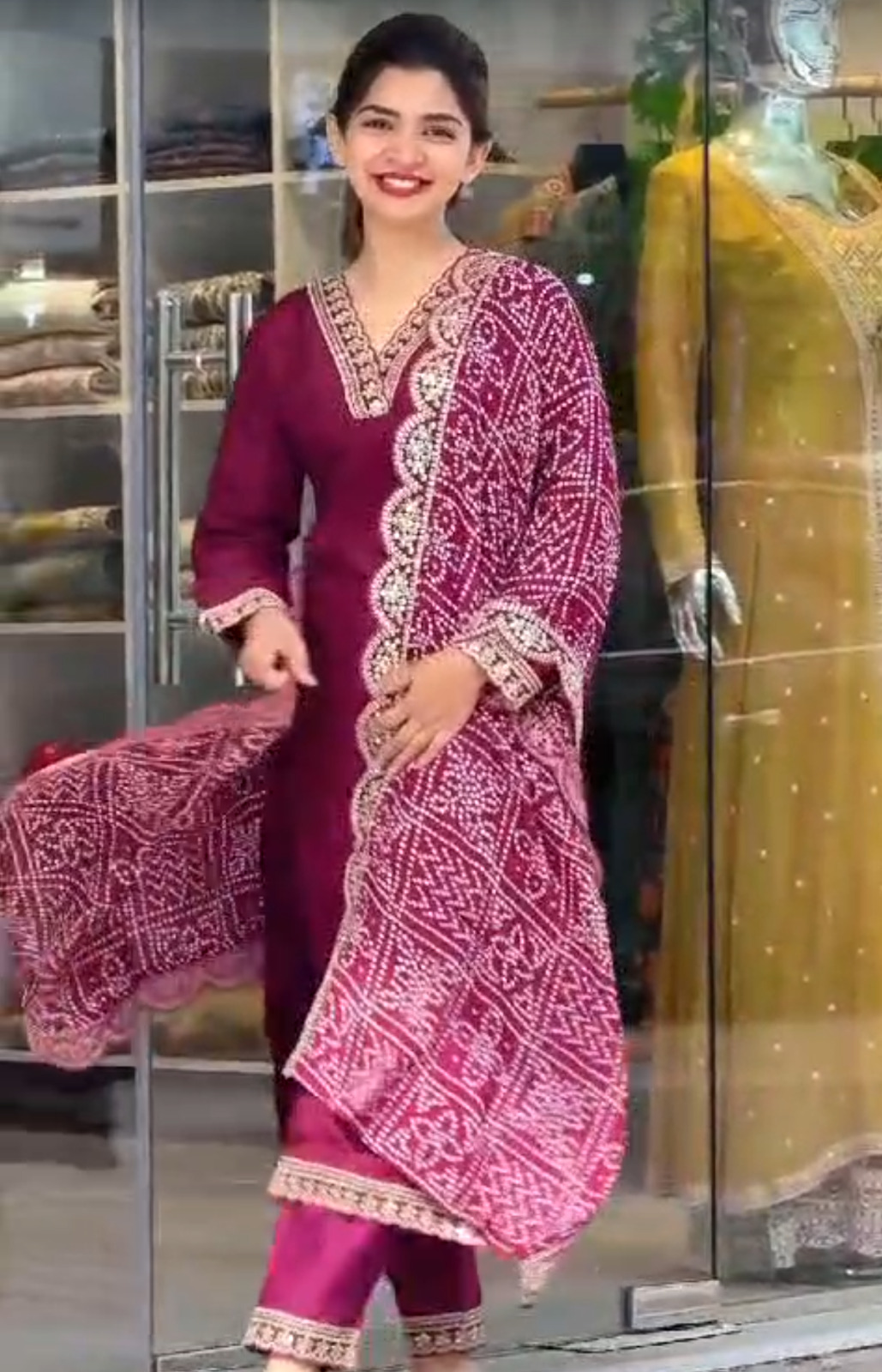ওড়না: চুনরি প্রিন্ট করা বিশুদ্ধ সিল্ক