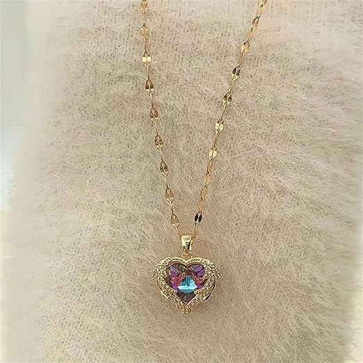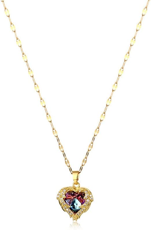 High quality gold plated stainless steel love heart diamond necklace jewelry eye pendant necklace for women