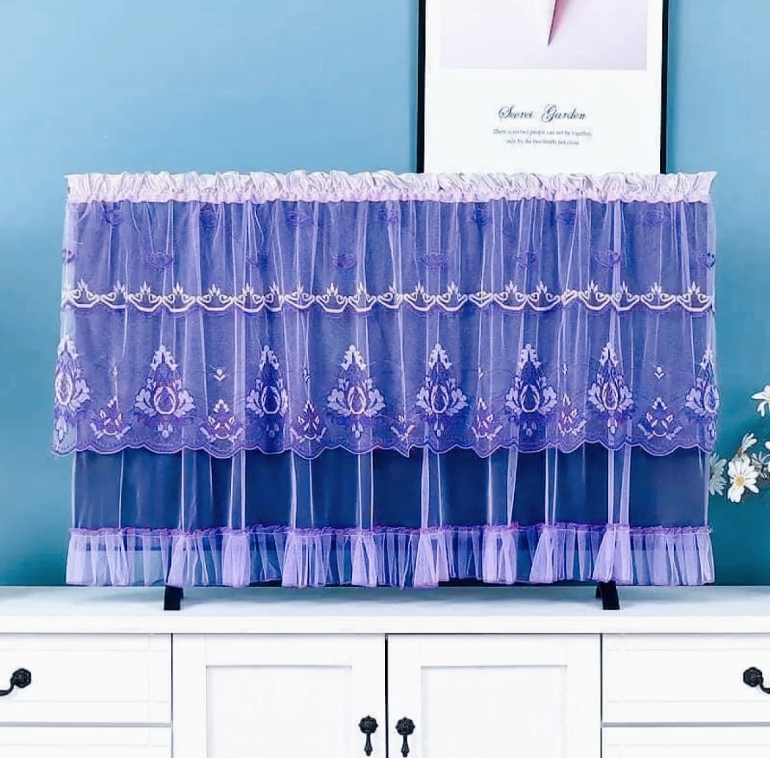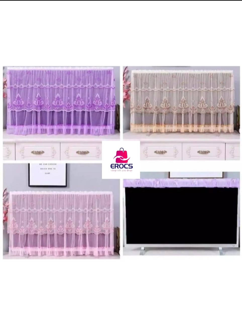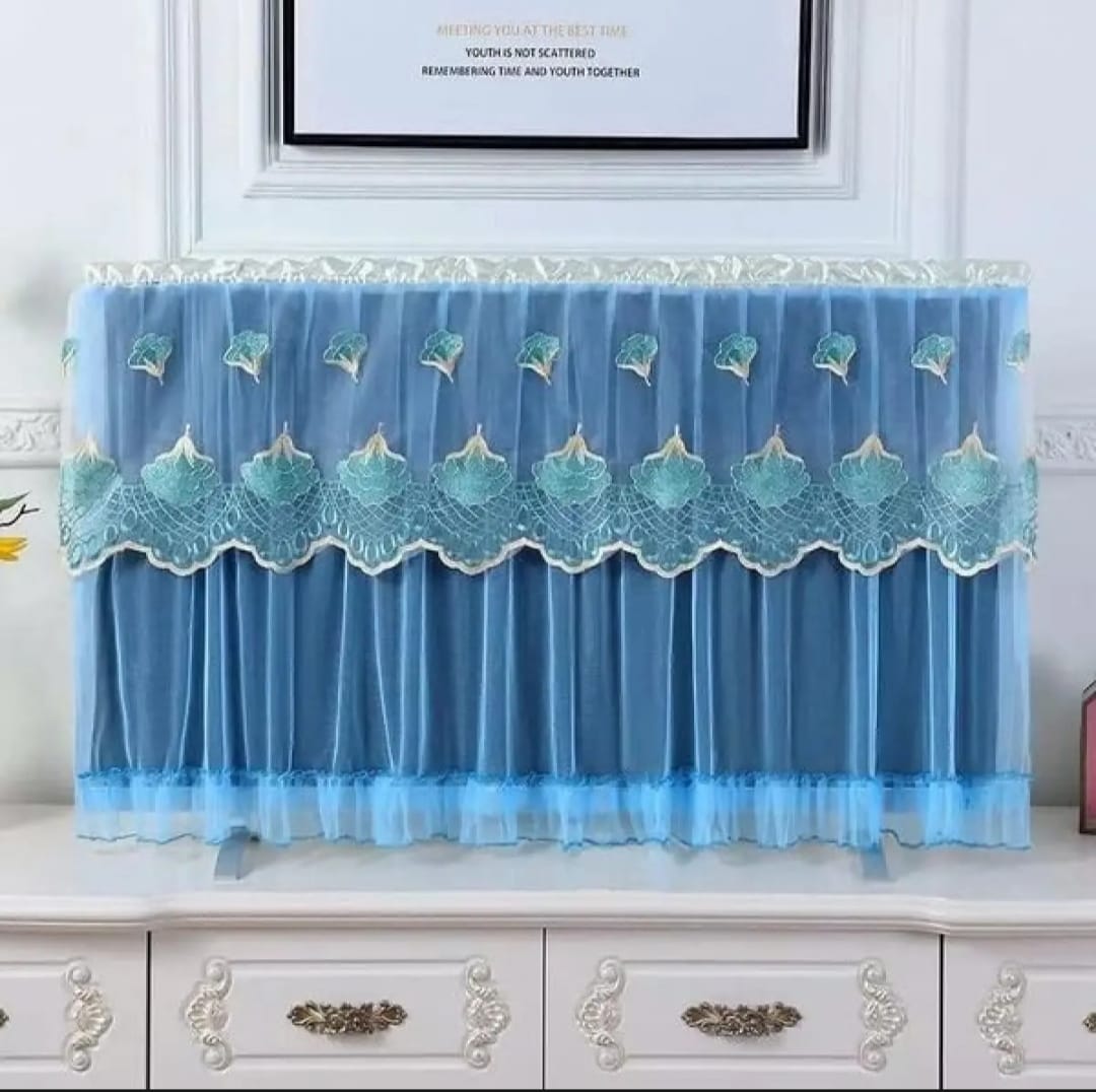 Indoor TV Cover with Front Flap Soft Lace Fabric Universal Flat Screen Dust Protector Exquisite for your Living Room