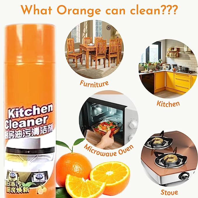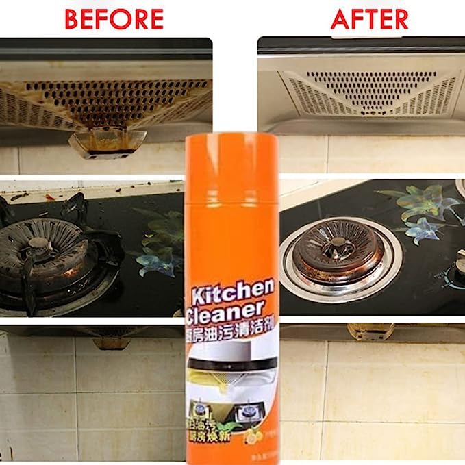 Kitchen cleaning Foam Spray, Effectively remove stubborn grease and carbon deposits attached to various stoves, hoods, ovens, frying pans and other kitchen utensils (500 ml) Nontoxic & Chlorine Free Grease Oil & Stain remover for Grill Exhaust Fan & Kitchen Cleaners.