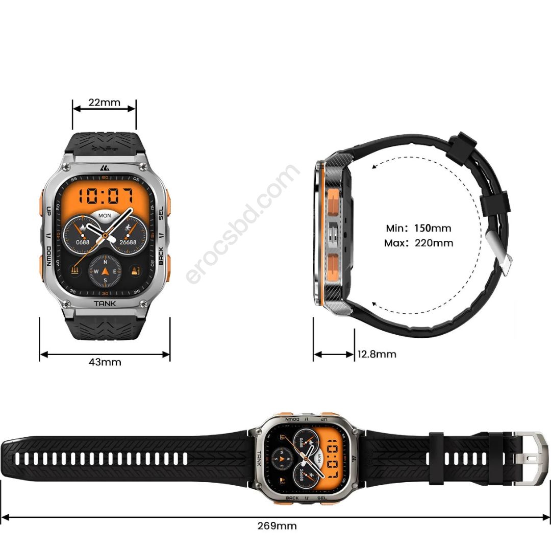 You can buy the best KOSPET TANK M3 Ultra Bluetooth Smartwatch at the best price in Bangladesh at EROCS BD. You can buy online. You can also visit our shop near you. EROCS BD Provides the KOSPET TANK M3 Ultra Bluetooth Smartwatch 7-day replacement guarantee and Starting Price of BDT 9999৳ but EROCS BD Offers a Special Price BDT 8999৳.
