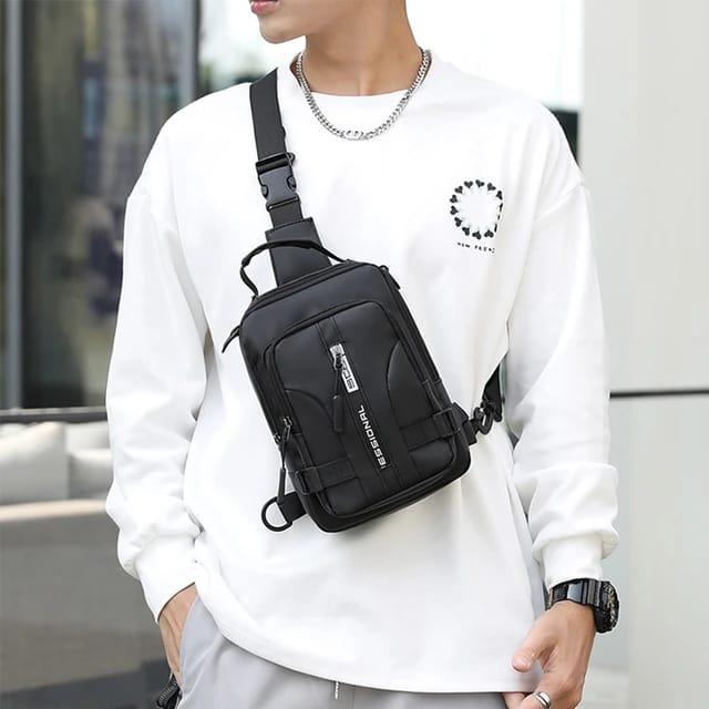 Men Multifunction Patent Nylon Chest Bag Waterproof