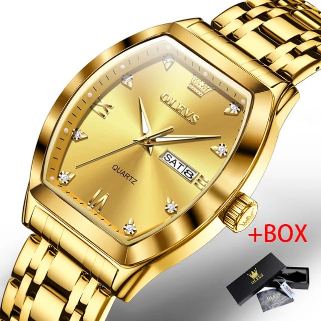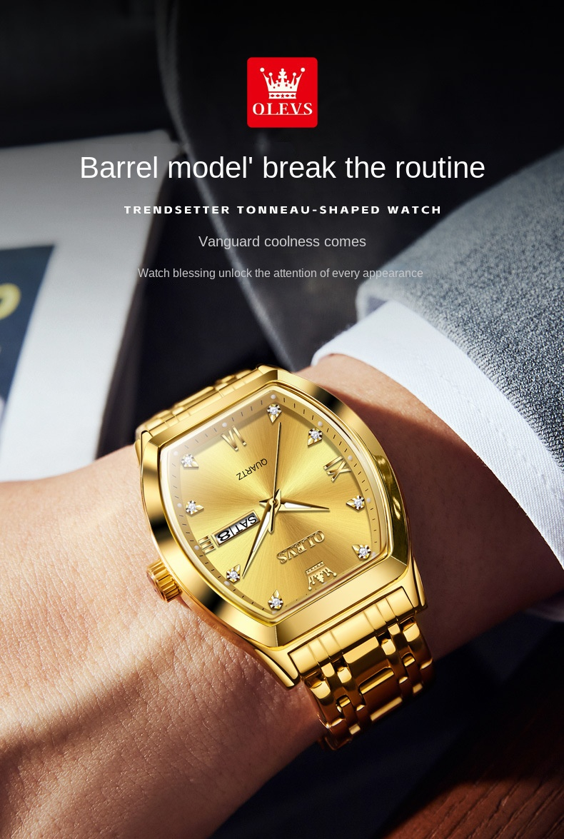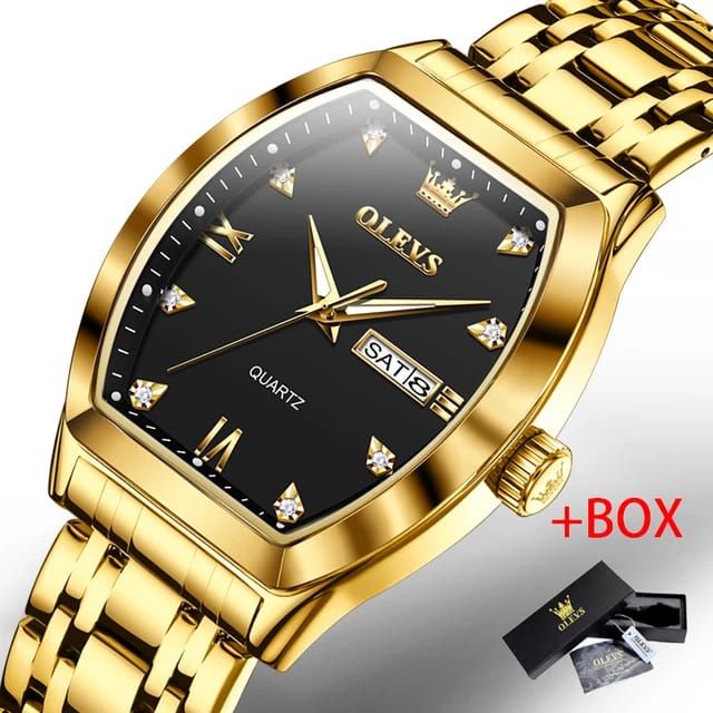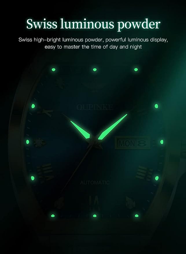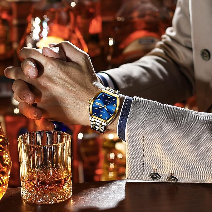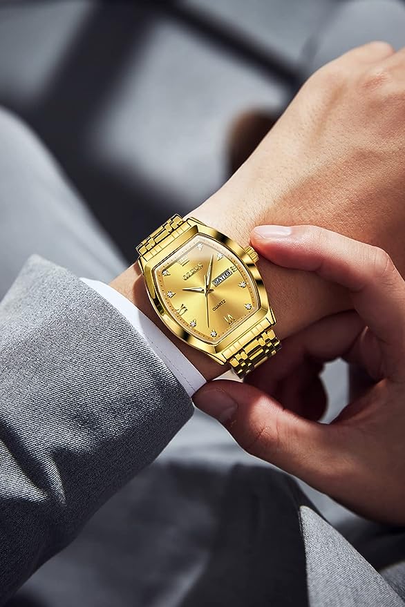 - ⌚ Innovative Design : New Tonneau big face, mainstream gold luminous hands, shiny diamond scales, classic analog Roman numerals and dual calendar windows to easily control the time. Demonstrating the luxury and fashion sense of the watch, it is the iconic accessory for mature men.