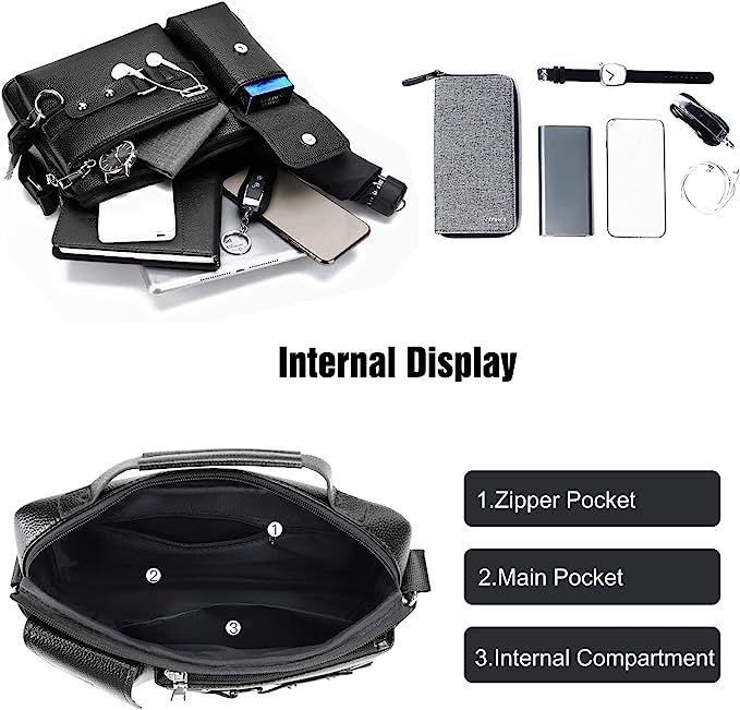 - 【One Bag Fits all Occasion】Men Briefcase features handle and shoulder strap, the long shoulder strap is adjustable and detachable, which makes it a multi-purpose laptop bag. Use it as tote bag, computer bag, shoulder bag, handbag, business work bag whenever you like. It’s perfect for work, office, shopping, business trip, travel and outdoors. Combination capacity and streamlined design that makes it perfect for busy professionals, and anyone on the go.
