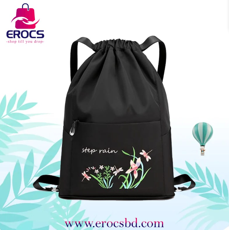Unique Foldable Embroidery Flower Print Backpack Travel and Drawstring Outdoor Gym College Waterproof Ladies Bag