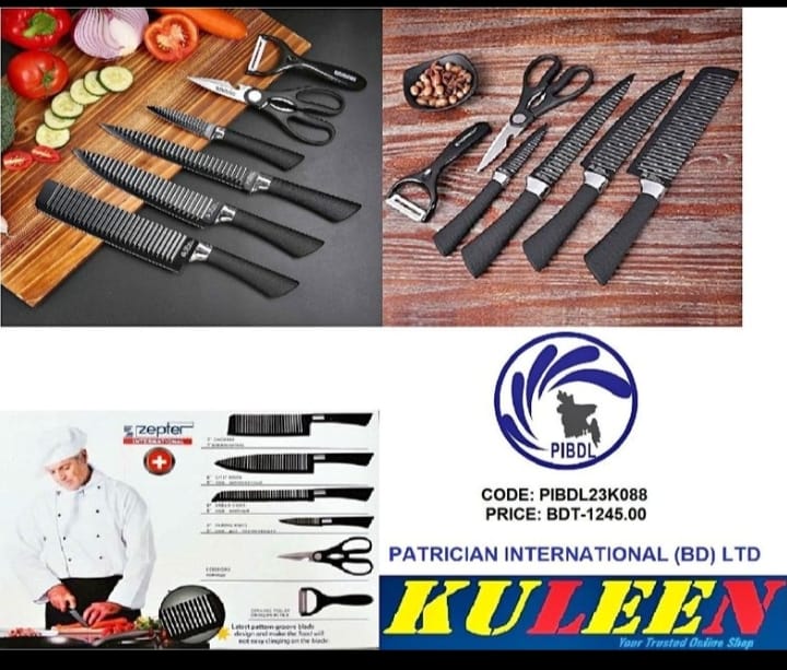 - A professional kitchen knife set that includes 4 knives, 1 scissor and 1 ceramic peeler.